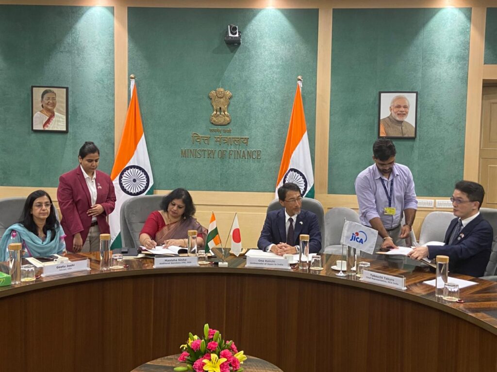 The agreement was formalized between Ms. Manisha Sinha, Additional Secretary, Department of Economic Affairs, and Mr. Takeuchi Takuro, Chief Representative of JICA India.