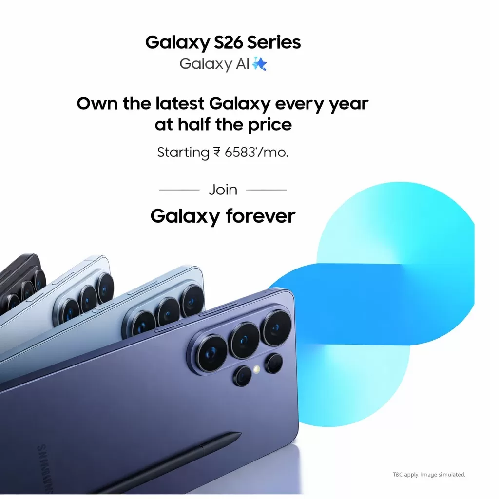 The programme allows customers to own devices like the Galaxy S26 Ultra and Galaxy S26 Plus by paying only 50% of the cost through 12 no-cost EMIs. After one year, users can choose to return the device with an assured buyback, retain it by paying the remaining balance, or upgrade to a newer Galaxy model.